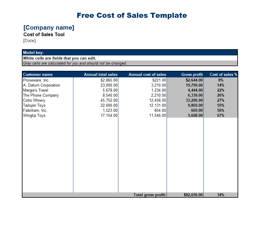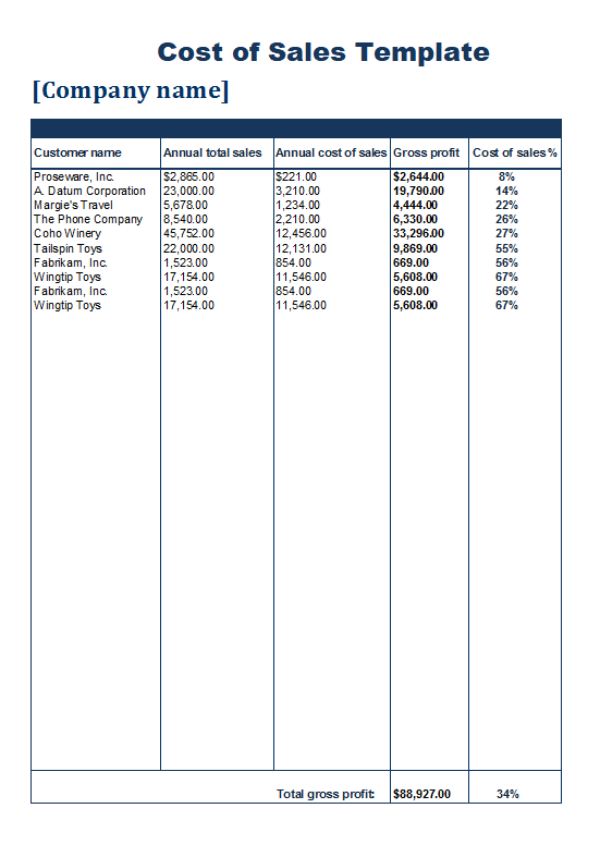 As far as the importance of the cost of sales template is concerned, it is a great source of getting knowledge about all expenditures that occur in the way production is within a company. Most companies use this document for determining all the direct or indirect expenses which they incurred in the manufacturing process. Generally, it includes the following content, like company name, date and time of preparation, description of association, details about cost of sales with all expenditures, total amount of cost of sale along with the signature of manager and authorized person.