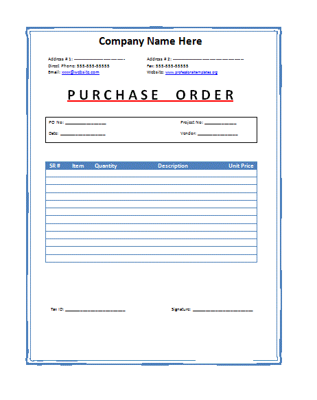 Professional Purchase Order Template
