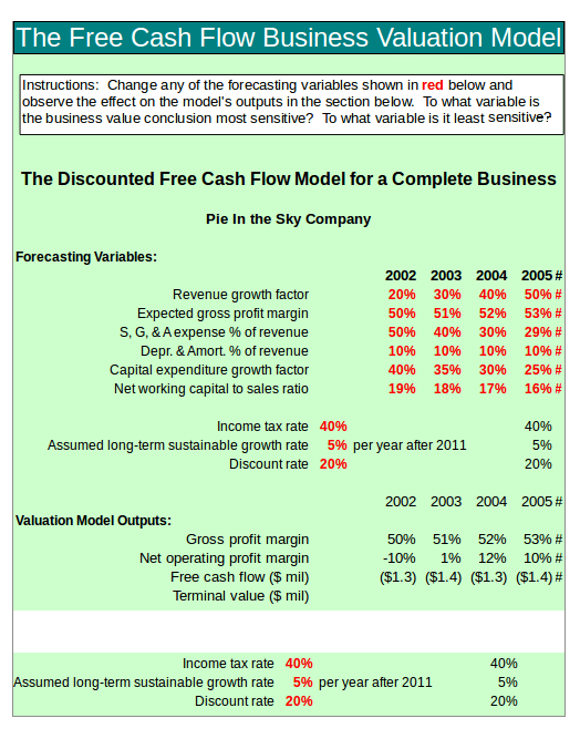 Free Cash Valuation Sheet Template
