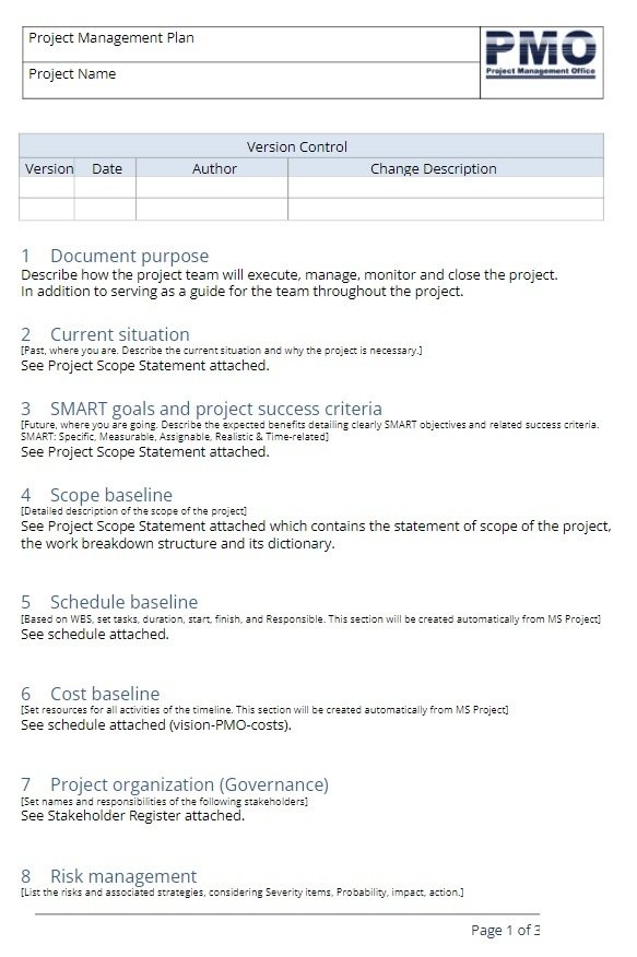 Project Management Planner Template