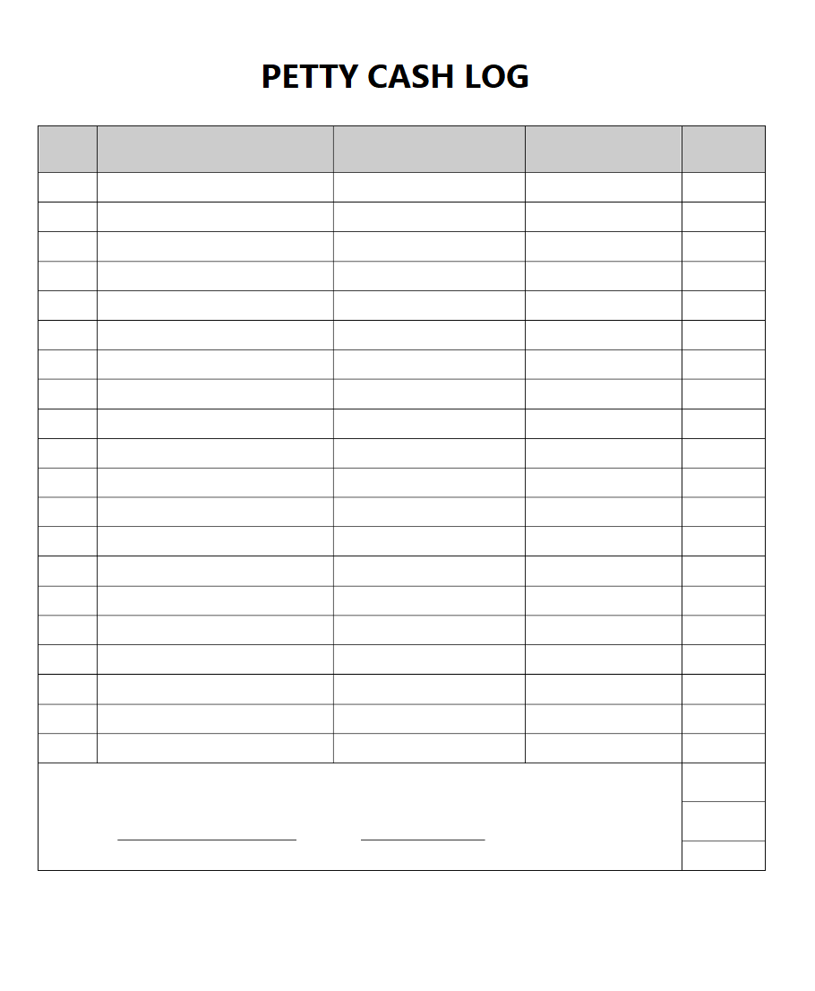 Petty Cash Log Record Template
