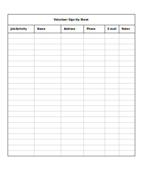 Monthly Sign Up Sheet Template