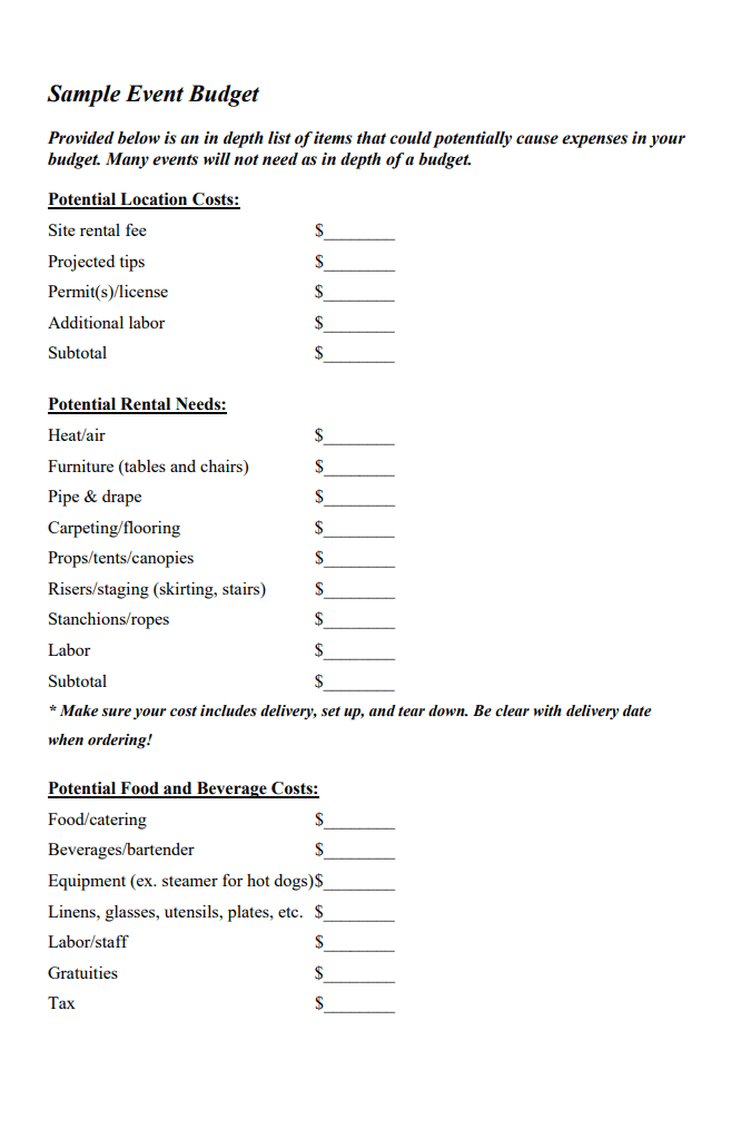 Event Budget Template Free Download
