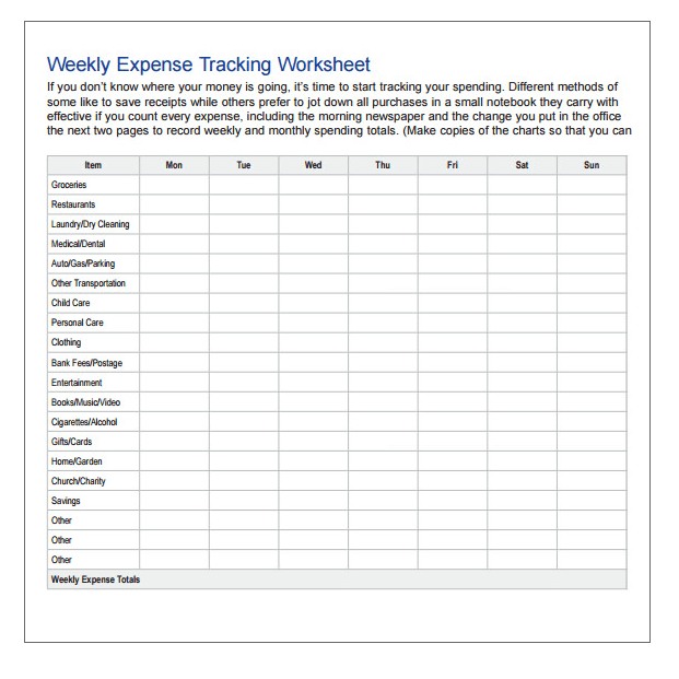 Weekly Cost Tracker Template