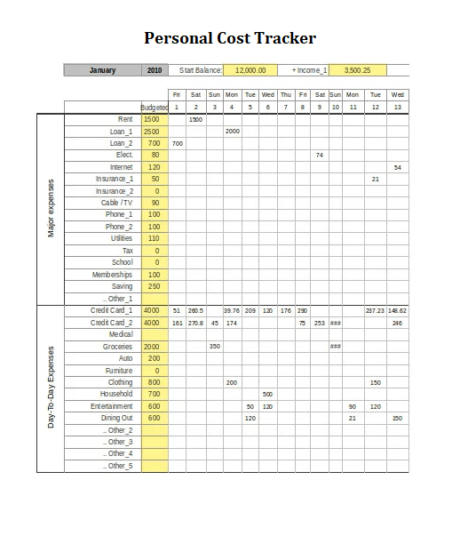 Personal Cost Tracker Template