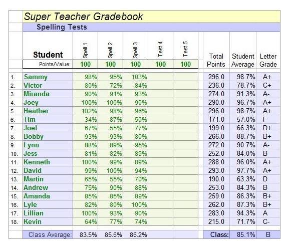 Free Gradebook Format Excel