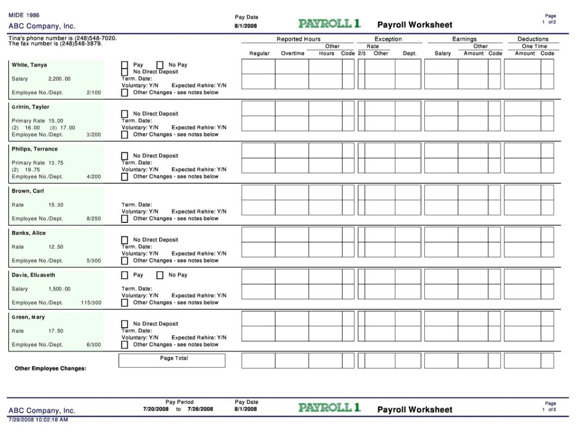 Payroll Calculator Worksheet Format