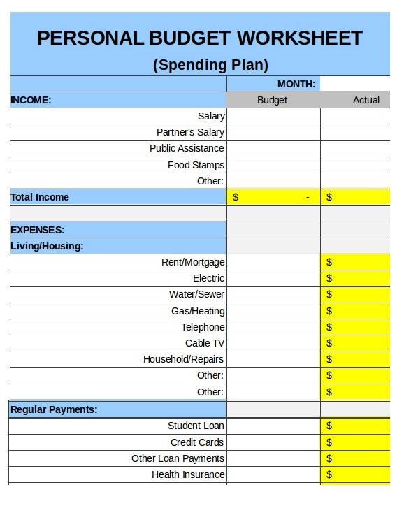 Personal Family Budget Template