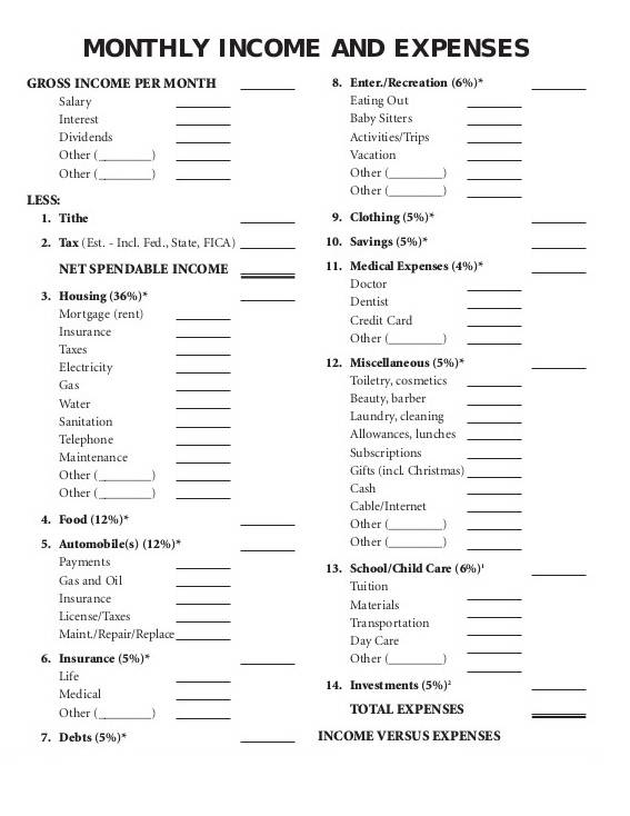 Sample Family Budgeting Template