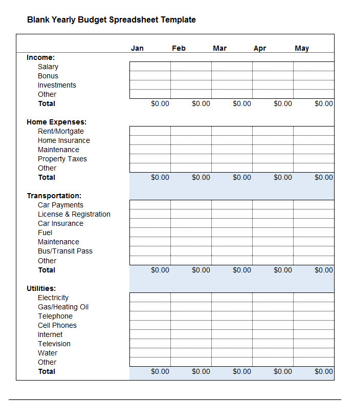 Blank Annual Budget Spreadsheet Template