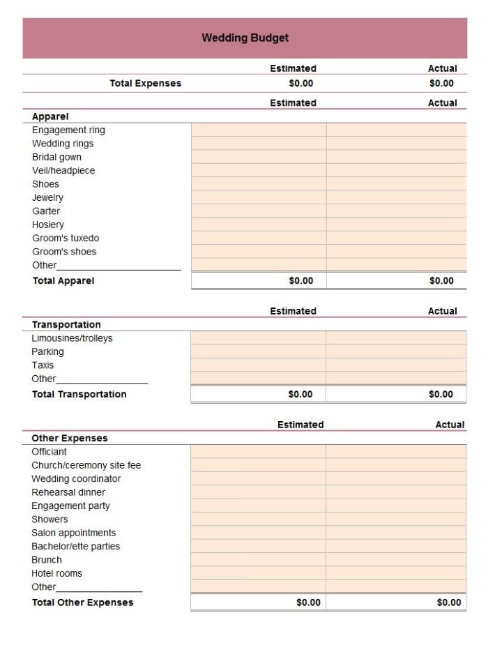 Wedding Budget Form