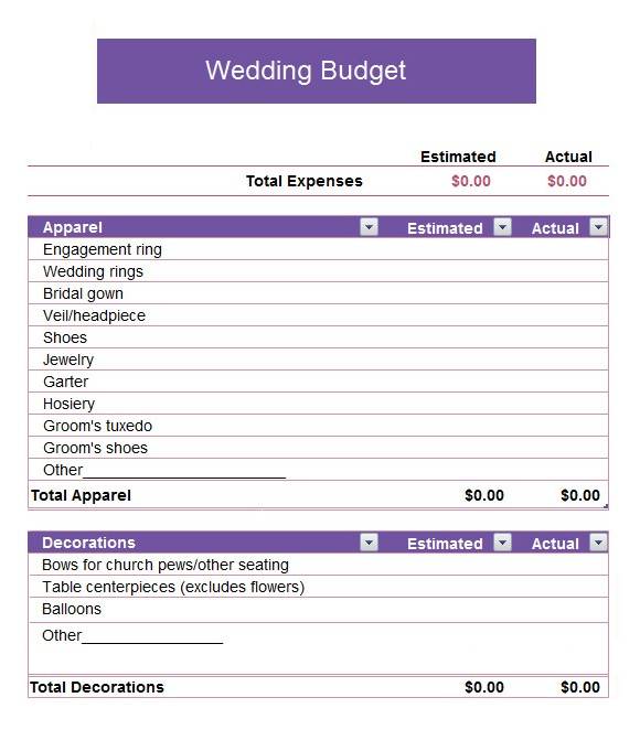 Blank Wedding Budget Spreadsheet Template