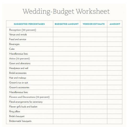 Wedding Budget Worksheet Sample
