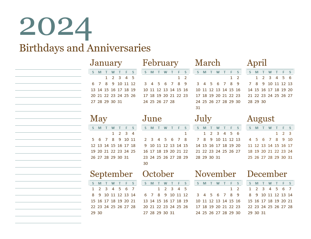 Yearly Family Calendar Template