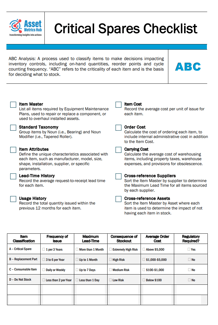Critical Spare Parts Checklist Template