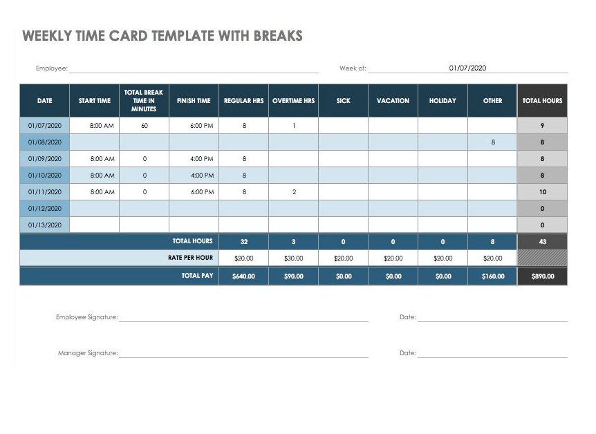 Weekly Employee Time Card Template