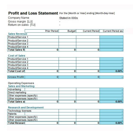 Fillable Company Profit Sheet Template