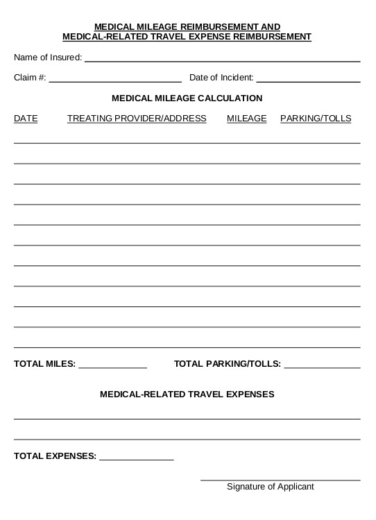Medical Mileage Reimbursement Form Template