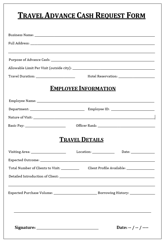 Travel Advance Cash Request Format
