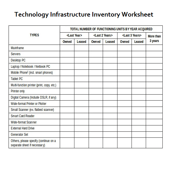 Technology Infrastructure Inventory Worksheet Template