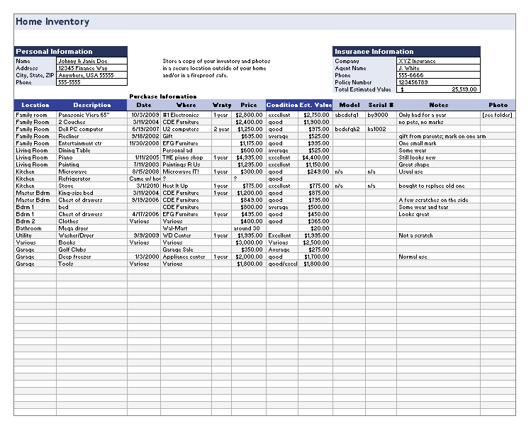 Inventory Worksheet Template Free Download Excel