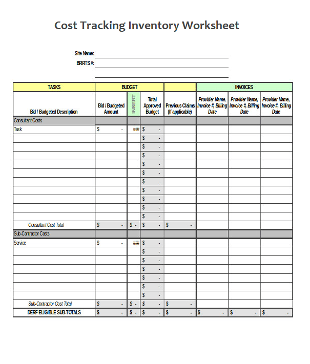 Cost Tracking Inventory Worksheet Template
