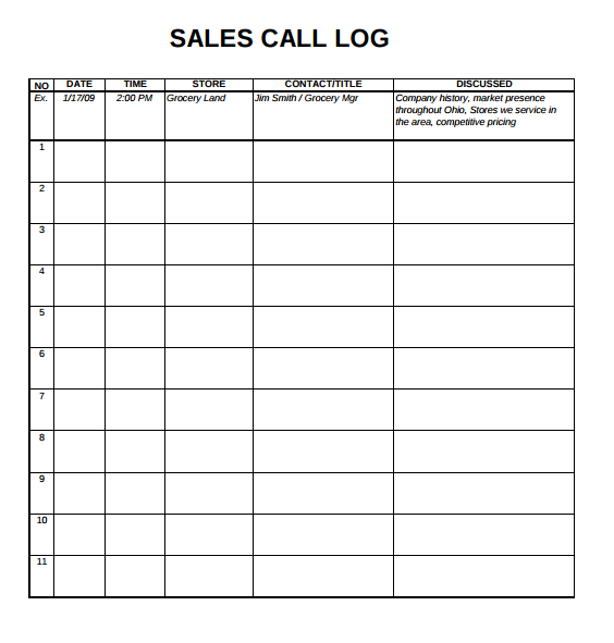 Sales Log Sample