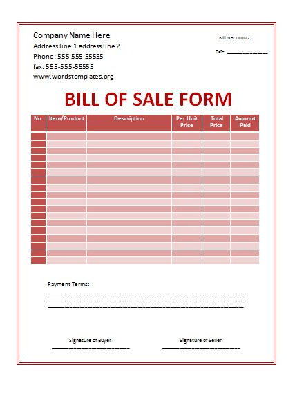 Bill of Sale Form