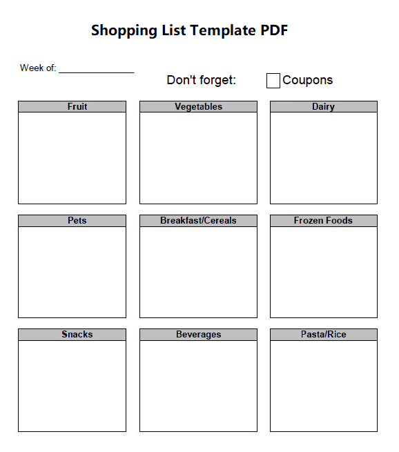 Shopping List Template PDF