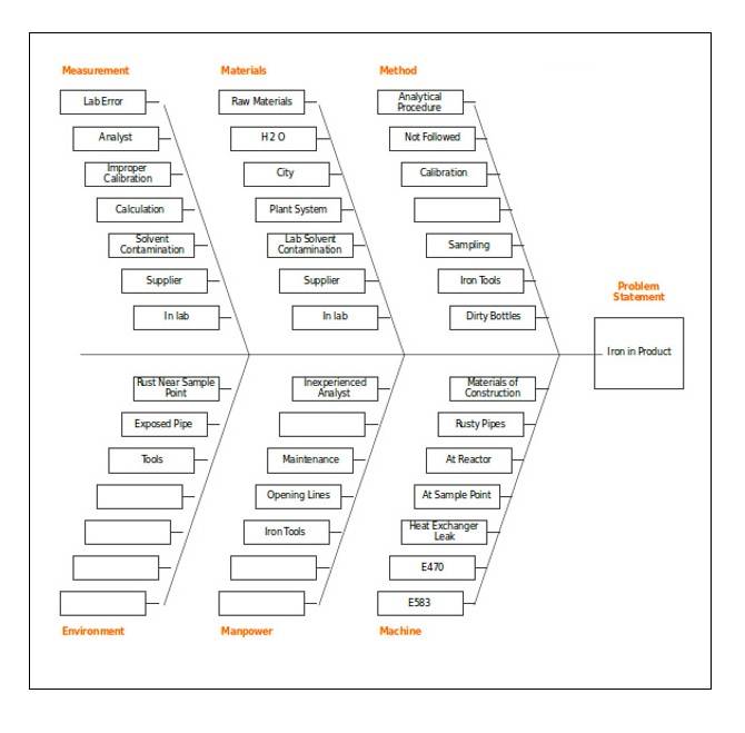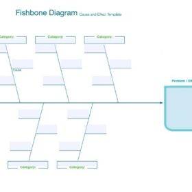 A fishbone diagram template is a diagram which is used for understanding causes of problems in order to find the root cause of these problems. It helps to visually display many potential causes of a specific problem, which are crucial for identifying the main reason for any problem or effect. This diagram is used as a structural tool for getting awareness of different ideas which are beneficial for solving problems. Basically, it is a diagram having different branches which shows causes, but it is specifically used for determining the root cause. A fishbone diagram template can help you in categorizing different causes into small or tiny branches, and you can easily highlight problems which are essential to solve for achieving success. As far as content is concerned, this diagram consists of; company name, date, time and shape of a fish having different branches for creating details about causes and root cause of any effect. Doctors also prepare these diagrams which they mostly use for locating the root cause of any disease and also for finding the best medicine which is beneficial for smoothly curing the disease.